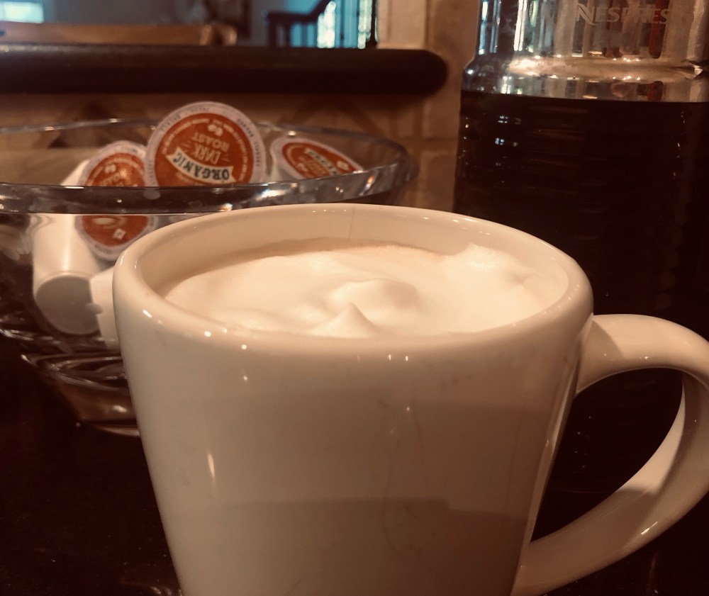 Starting the day with a dose of calcium! The Nespresso milk frother is one of my favorite kitchen tools. I have tried many frothers over the years and this one seems to work the best, especially when the milk is fresh. I like it a latte! Try it – it’s so good! And good for you!