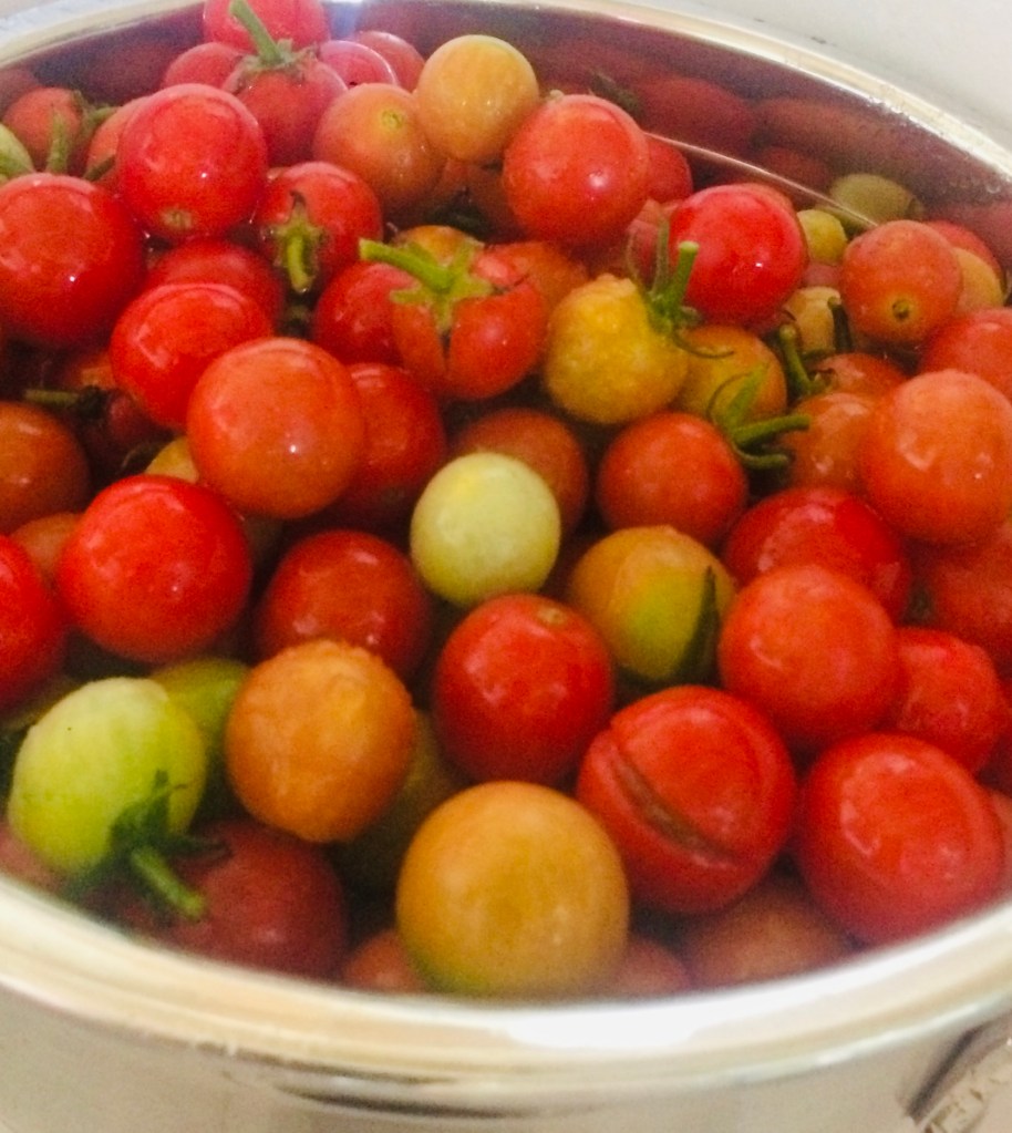 At the end of our summer garden, we should break up the ground and pull the dead plants and weeds, but by the time we get to the end of our summer garden, life gets busy again and we get tired of doing garden work. So… we let the plants sit and we let the weeds and thorns grow. I’ll post a picture after I take one, but in winter, our garden area looks more like a home fit for rodents than a home for a flourishing garden. Come spring though, we always trudge through the grass and weeds and dead plants and dig and plow and replant. We always get some fruit from our labor, although some years it’s more plentiful than others. Last spring and summer, we did harvest a very small crop of broccoli (see my recipe for broccoli leaves because when you get a small harvest you want to savor every bit of work), basil (it was delicious in my citrus quinoa salad), cucumber (recipe coming soon – my favorite refrigerator pickles), a few very large zucchini and a few tomatoes (for a delicious tomato pie and even a cherry tomato enchilada sauce). In hopes for a late season picking, we kept the tomato plants in the ground after the first frost and finally got a large crop of tomatoes in the fall. They were green, but they ripened in a dark cardboard box. The wait was worth it and so was the extra work because I still have a freezer full of garden tomatoes for lots of homemade marinara sauce!