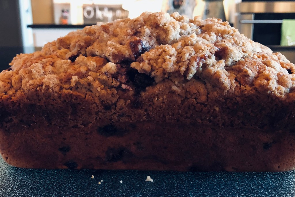 If using a loaf pan, bake for 45-60 minutes, checking periodically until done. I use a large loaf pan and it typically doesn’t spill over, but place a cookie sheet on the rack below pan to catch it in case.