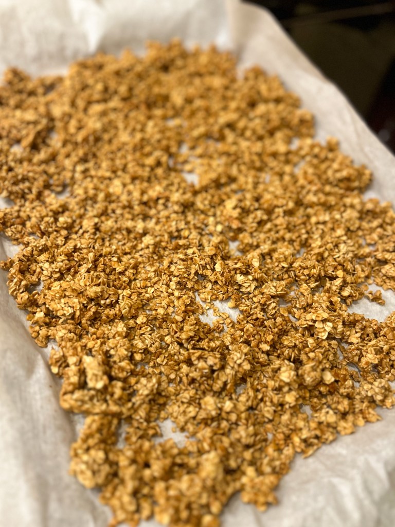 My kids don’t like nuts in their granola, but this is still good and crunchy without the nuts. It is so easy, but oven temperatures seem to vary so be sure not to over-bake it. It keeps for a long time and tastes great with yogurt, fruit and maybe a little extra honey drizzled on top. I have made it with coconut sugar and 💯 unprocessed, organic and unrefined cane sugar (our preference because it won’t spike your blood sugar and is not processed) and both were sweet enough for even my sweet toothed, picky eaters. The brown sugar version is really good too though!