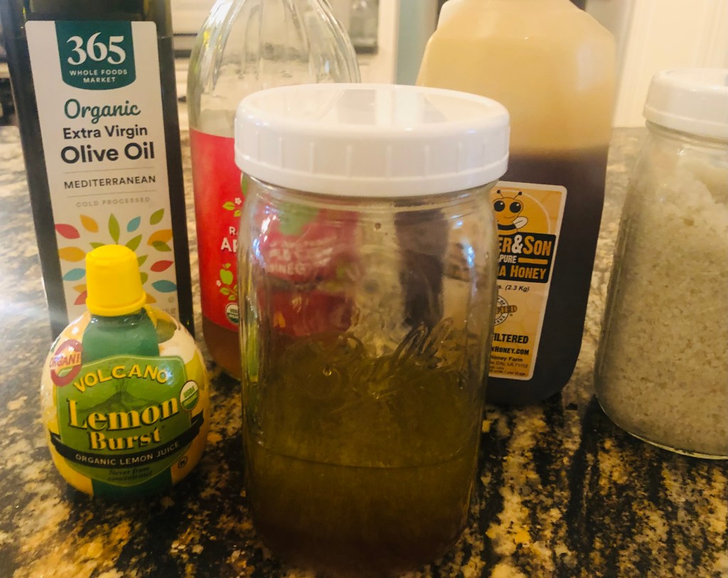 This dressing tastes best on a kale or spinach salad with apples, feta and pecans or walnuts or pears, goat cheese, and nuts of choice.