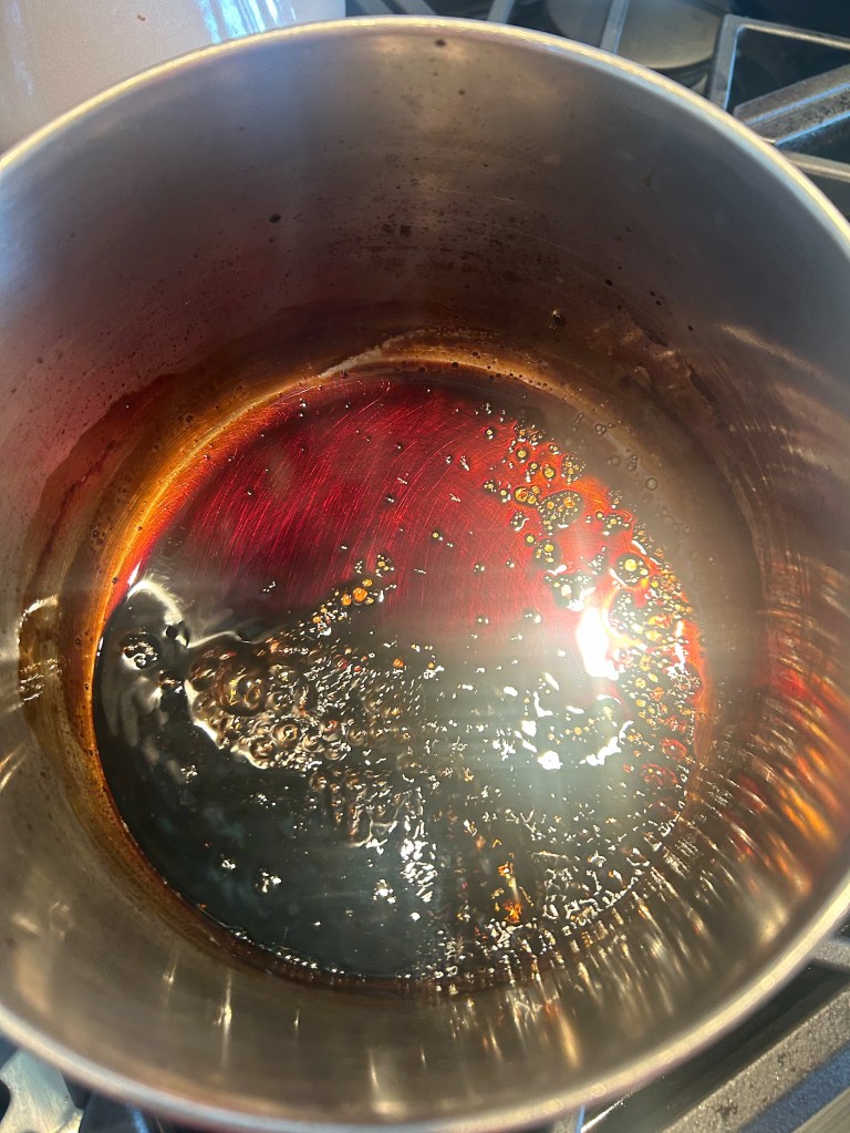 Heat on medium low and let simmer until thickens or reduces by about half. Once you see legs on the bottom of the pan like the third picture above, it should be done. If it tastes sweet and not tangy, then you’ll know it’s done too. Don’t simmer too long because it will get sticky and hard! Total time should be about 10 minutes, depending on your stove.
