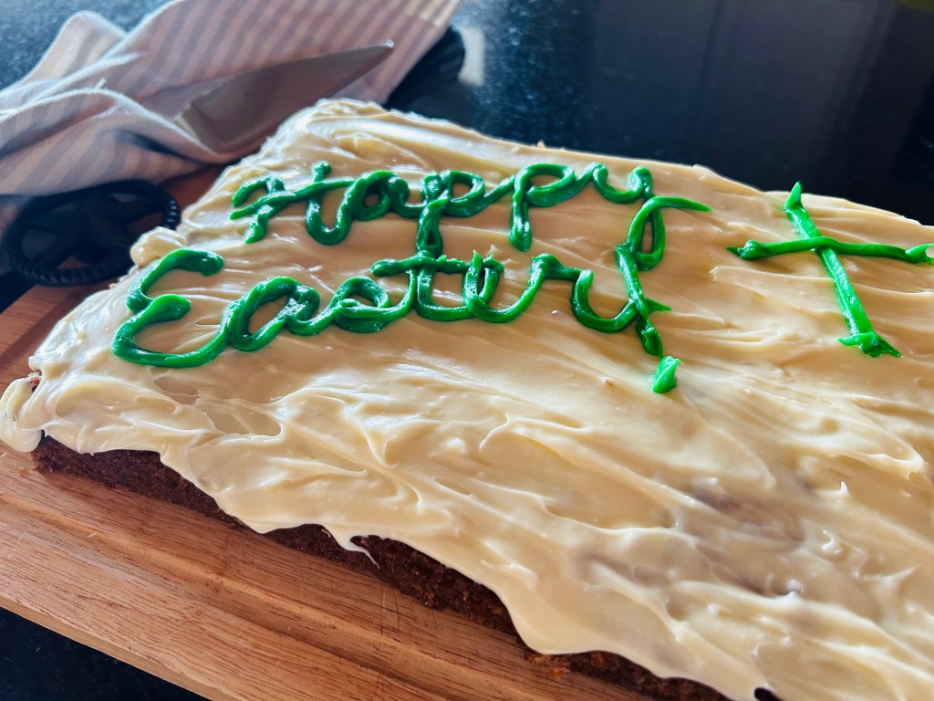 This is my husband’s favorite cake. We make it for his birthday and for Easter. It comes together really quickly and is very moist and sweet. It’s from an old Junior League cookbook from Shreveport/Bossier.
