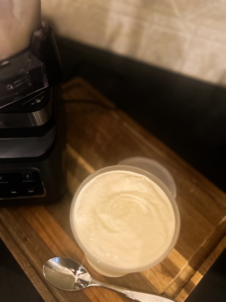 Eat when smooth and creamy or pour into quart container to freeze and eat later. Place a piece of parchment or wax paper over the top of the ice cream to prevent freezer burn. Place in freezer until ready to eat! If you want a softer texture, re-blend it when you take it out of the freezer and before serving.