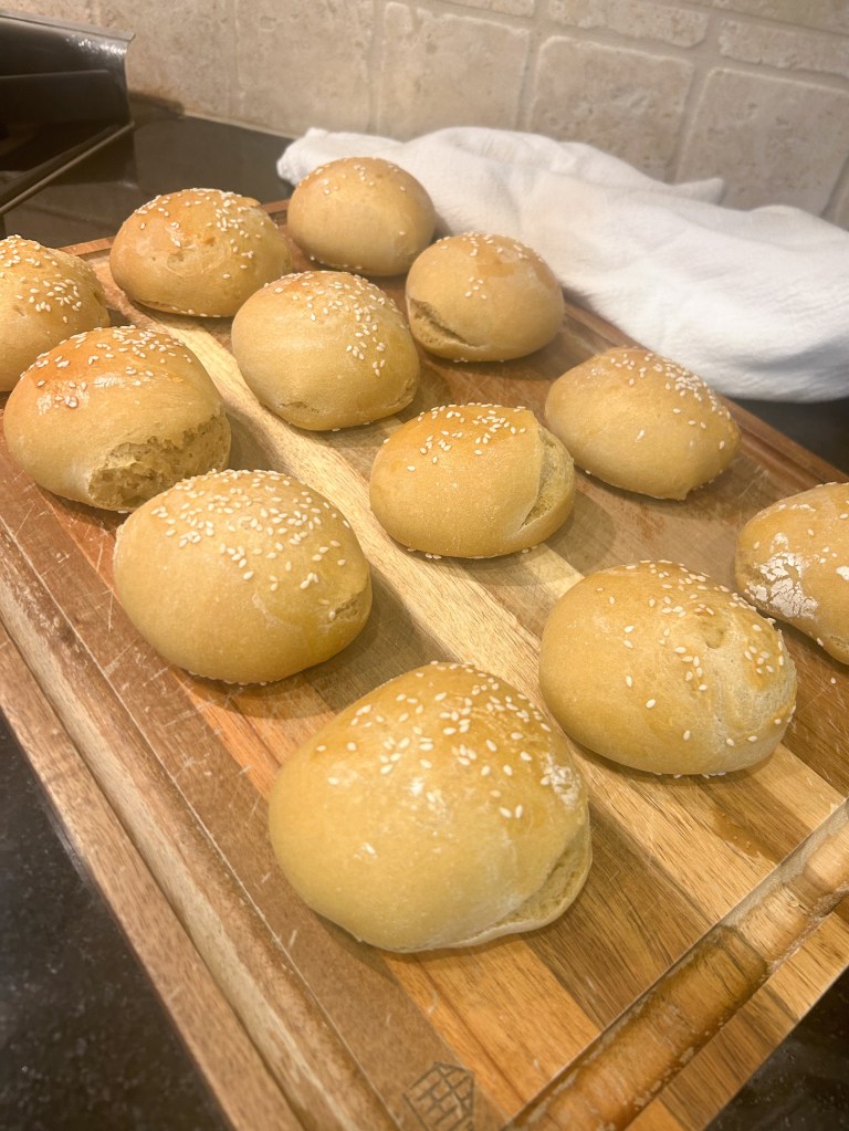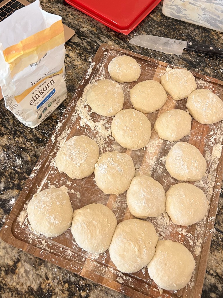 My kids love taking sandwiches on buns to school and we eat a lot of burgers so this is a recipe I have been wanting to try for a long time. Click on this link, littlespoonfarm.com, for the original recipe and to use all purpose flour. I substituted AP Einkorn flour, which needed a lot less water. My kids liked them in their lunches and we loved them with our burgers. They are a little sweet so they taste good warm with butter too! As always, with homemade, the texture is different and more dense than store bought, but we like it that way. I hope you enjoy!