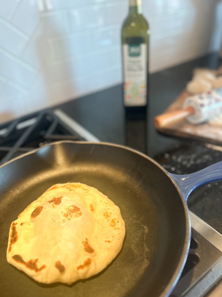 **While each naan is on the skillet, roll out your next dough ball and it will be ready to go by the time your other one is done.