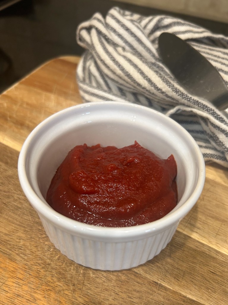 Fermented vegetables have more probiotic in them than a probiotic pill so I try to sneak in ferments for my family as much as I can. This ketchup tastes different than store bought because it is more rich, more thick, and maybe even sweeter. Two of my kids prefer store bought ketchup, but my husband, my oldest son, and I prefer this fermented version. My friend, Katherine, who you can meet if you go to the Shady Grove Ranch Farm store, gave me this recipe for fermented ketchup. She has a wealth of knowledge on ferments and baking! I also have a fermented salsa that is delicious and easy to sneak in on tacos and my kids don’t even notice.