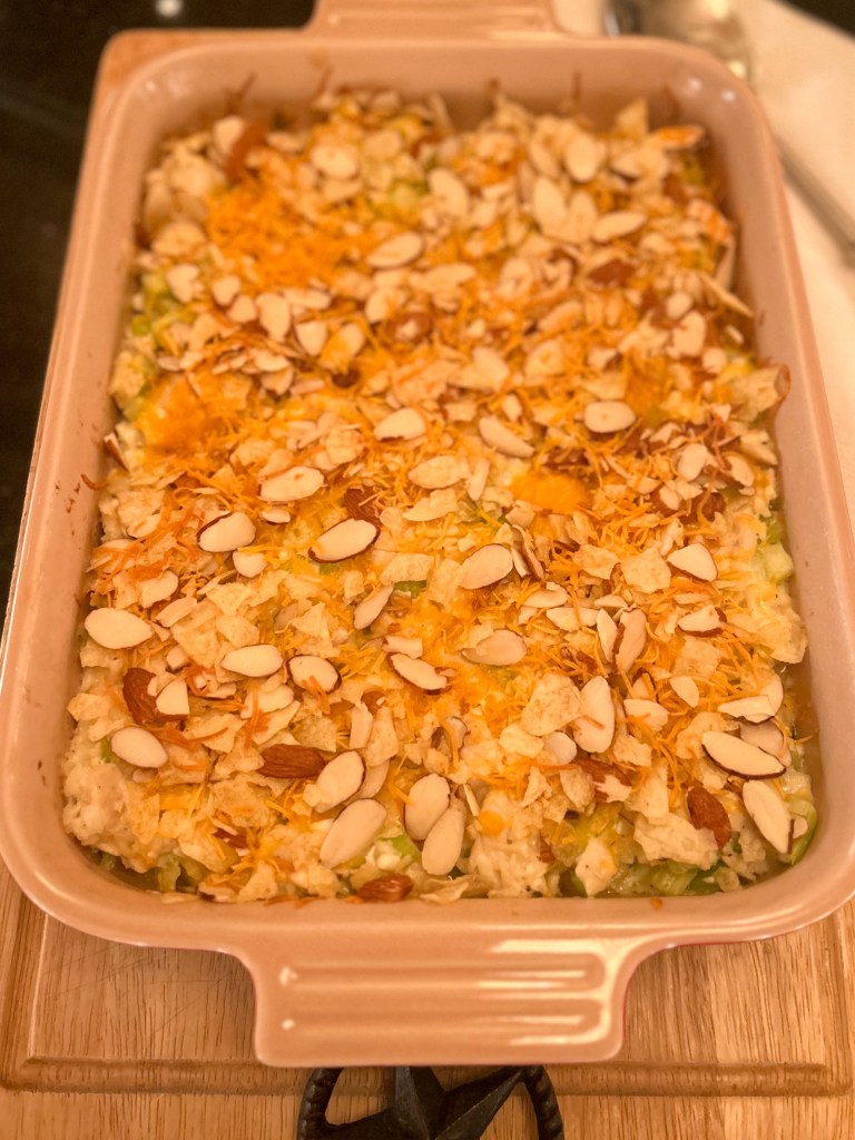 This was one of my father in law’s favorite casseroles. His friend at work used to eat it for lunch so my mother in law got the recipe from his friend’s wife. My husband remembers eating this as a kid too. He did remember more potato chips and cheese so he added some onto his serving. Next time, I’m going to add a chopped and partially cooked russet potato for a little something extra.