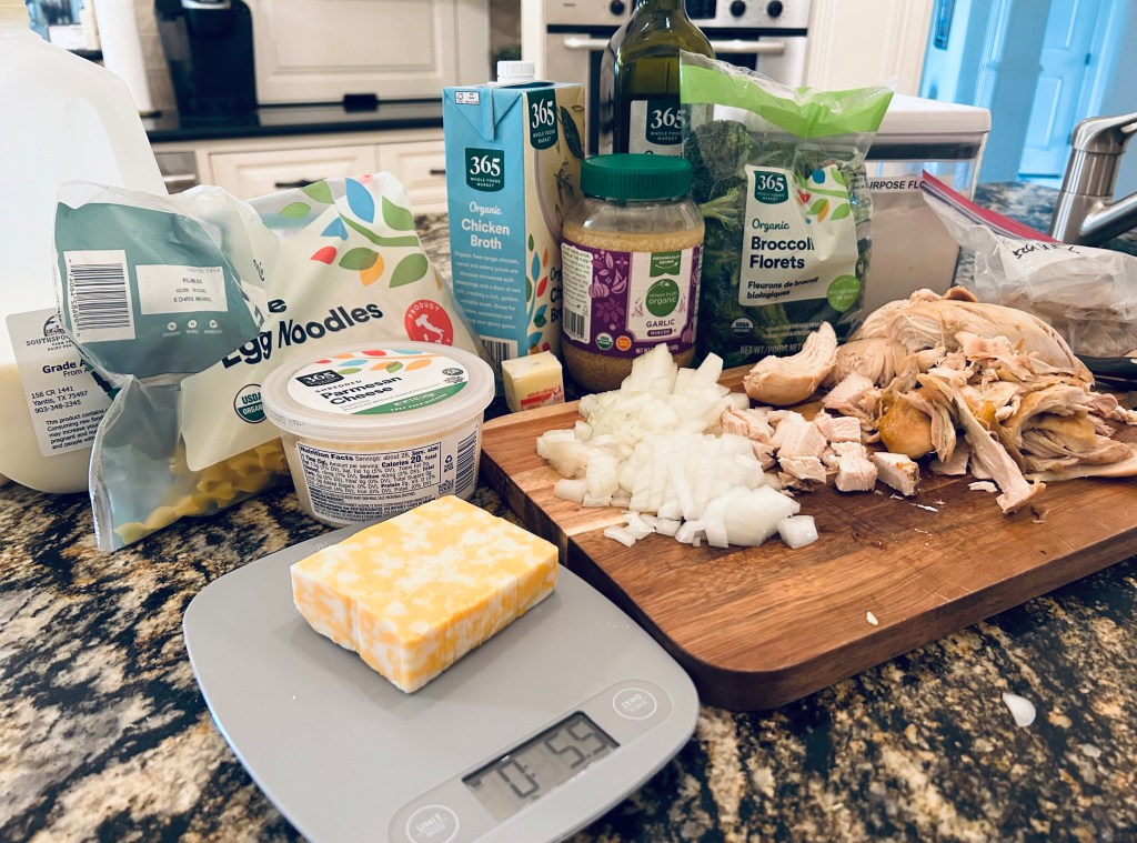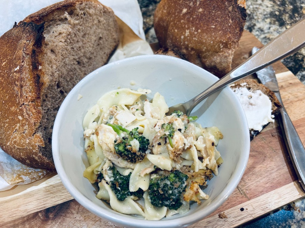 - 8 ounces wide egg noodles or 8-12 ounces Bionaturea sourdough wheat penne pasta (will need to add extra salt to taste if you use extra pasta)
