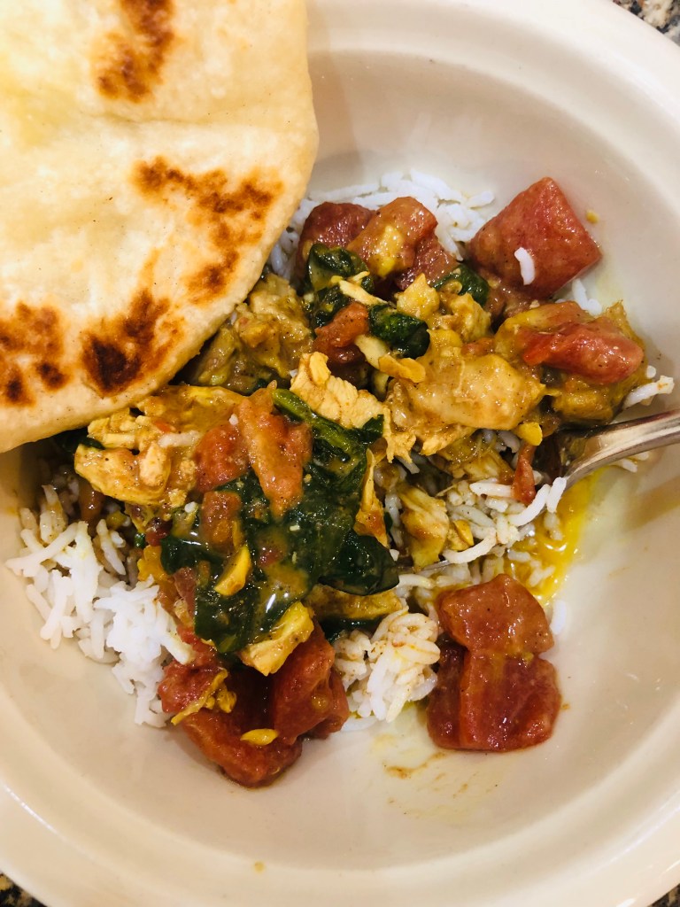- serve with soaked and baked rice (brown or white) and/or naan bread