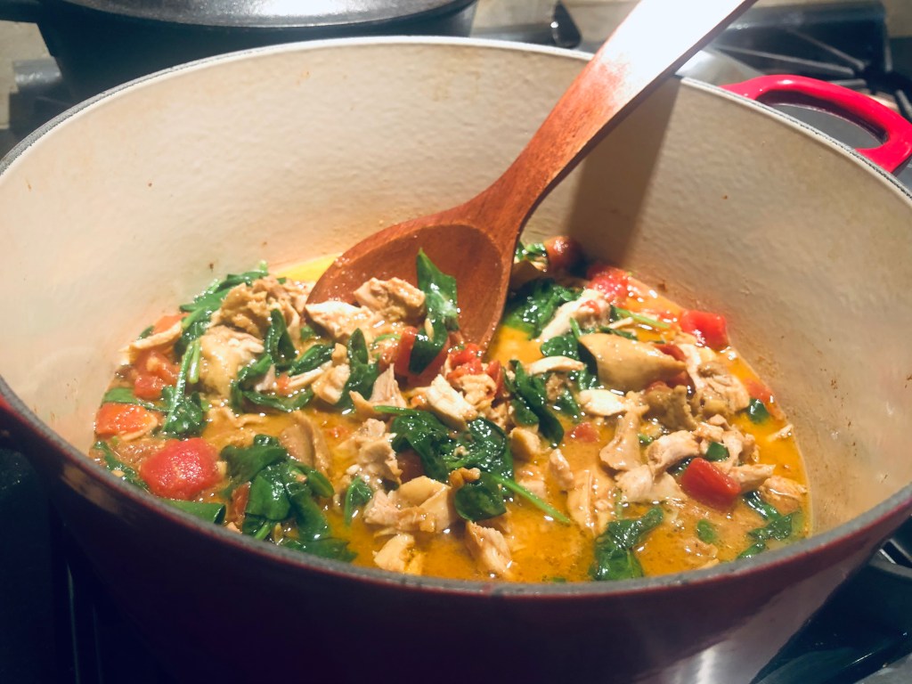 Bring to a simmer and then reduce tempurature to medium low and cook for 30-40 minutes until chicken is tender.