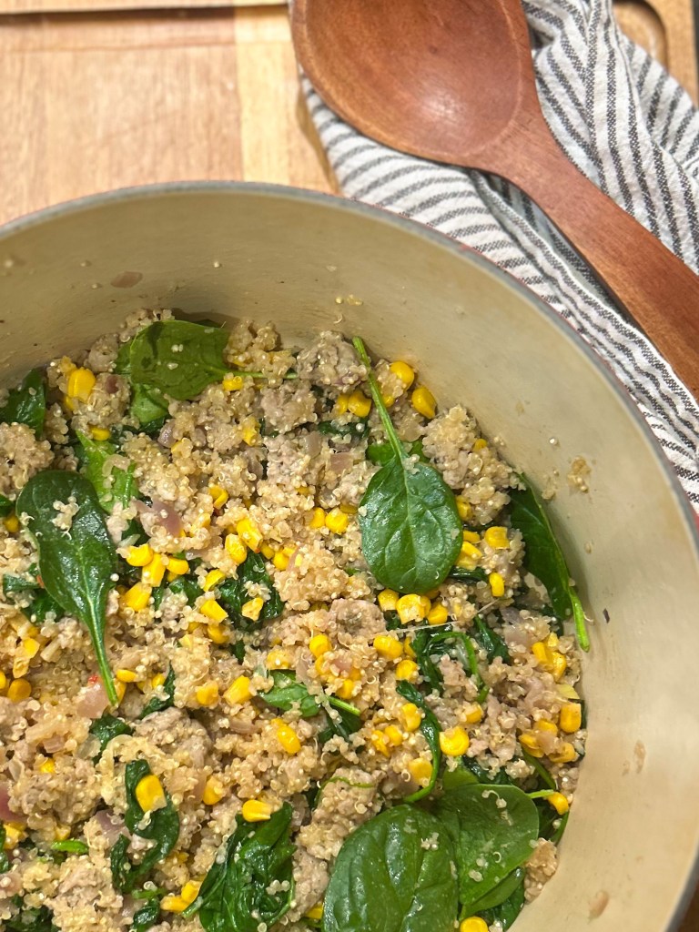 Sausage, Spinach and Corn Cous Cous or Quinoa
