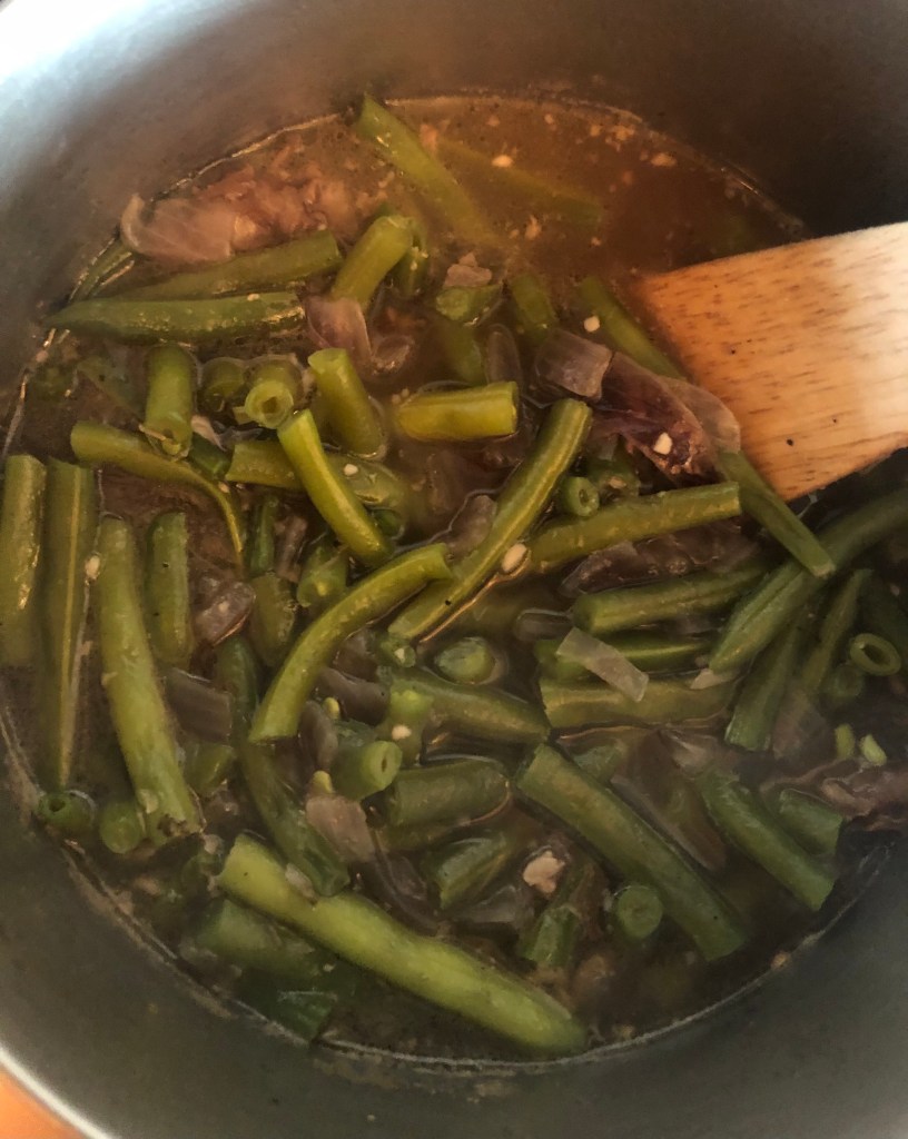 My dad grew up on a farm that my grandma still lived on when I was little. I still remember her kitchen, the smell of her house and downstairs library, and I especially remember these green beans. The soil in Indiana was better than Texas so these green beans were really good. I don’t have her recipe, probably because she didn’t have one, but I’m pretty sure these are close to what she used to make.