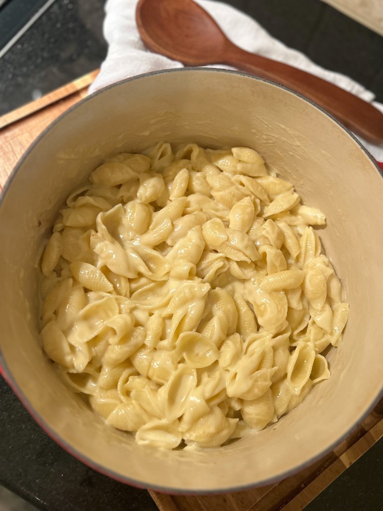 Also, I tried whole wheat penne pasta with this and it was a no-go for my kids. They really wanted the shells for looks, the cheese sticks better to the shells, and the white pasta shells don’t break down like the whole wheat does when stirring too much.